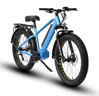 The EUNORAU FAT-HD is one of the most powerful production eBikes on the market today. Built entirely around the Bafang BBSHD 1000w motor. On the features list we have the two height pannier rack has a wide plate and the spring tensioned arms for holding small, pliable items, and the metal fenders are a great plus. Metal Fenders stay in place much better, especially when encountering loose and packed terrain such as mud. The strong 13ga spokes are well fitted for the size and torque of the system, and the wheel punch-outs make for a great look on the bike overall and it is equipped with fat tires, front suspension and a hefty battery to help it power through the mud, snow, sand, and pretty much anything else you can throw at it.