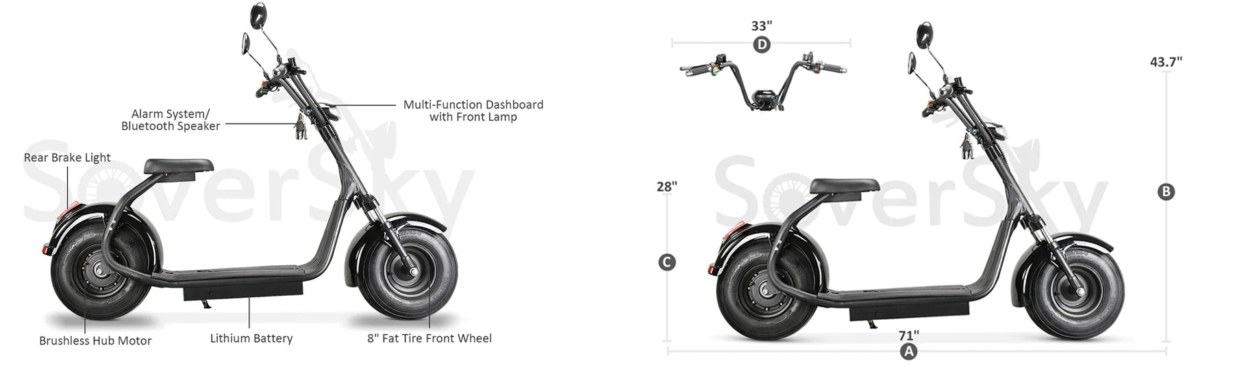 Motor:2000W Brushless Rear Hub, 80 NM max motor torque
