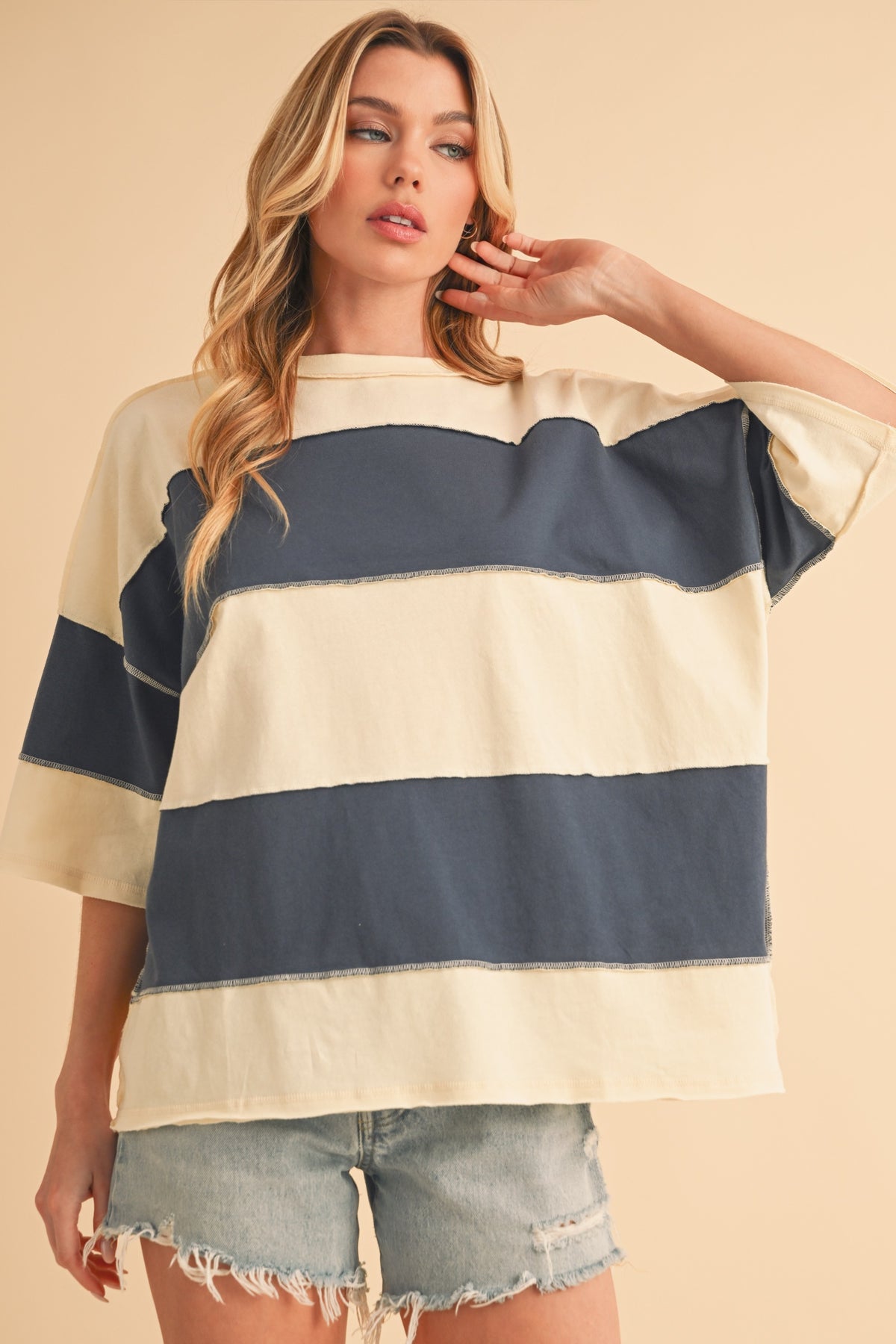 Make a bold statement with the Polly Color Block Top, designed for a relaxed, oversized fit that works for everyone. Featuring vibrant color blocking in contrasting panels, this versatile piece layers effortlessly over basics or stands alone as a casual essential. Soft, breathable fabric keeps you comfortable all day long, whether you're running errands or meeting friends. The generous cut offers freedom of movement and modern style that never goes out of fashion.