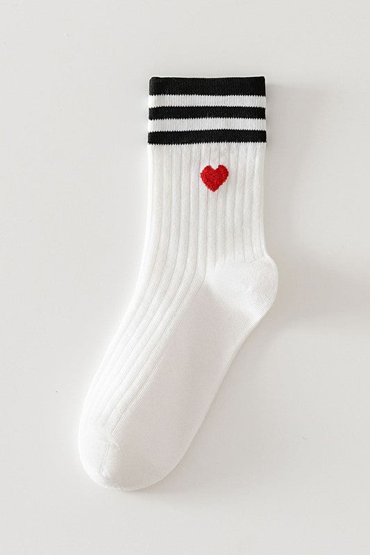 Striped Heart Knitted Mid-calf Socks